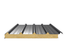 Толщина кровельных сэндвич-панелей варьируется от 50 до 300 мм, что позволяет выбрать оптимальное решение под регион эксплуатации и особенности объекта. Утеплитель из минеральной ваты обеспечивает надёжную тепло- и звукоизоляцию, а жесткие внешние оцинкованные металлические листы с антикоррозийным полимерным покрытием устойчивы к влаге, ультрафиолету и механическим повреждениям. Специальный профиль верхнего листа формирует дополнительное ребро жёсткости и улучшает водоотвод, препятствуя застою осадков на крыше.